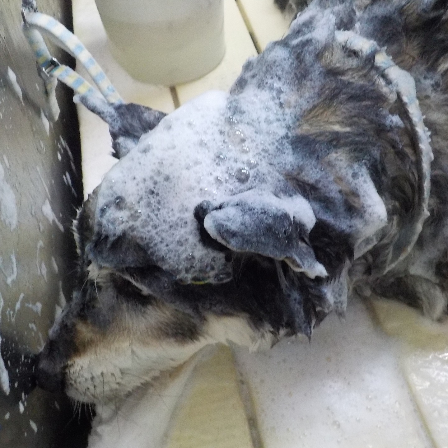 在りし日の虎次朗 今年の7月にbellflowerさんでシャンプーしてしてもらっている時の